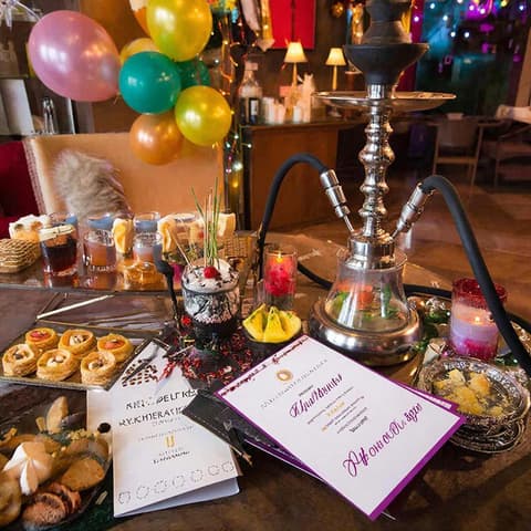 Кальян на мероприятии - это не просто услуга, это настоящее шоу, которое порадует ваших гостей и добавит атмосфере уникальный шарм. Мы предлагаем различные варианты дизайна кальянного стола, подбор ароматов табака, возможность заказа специальных кальянов для тематических вечеринок и многое другое.